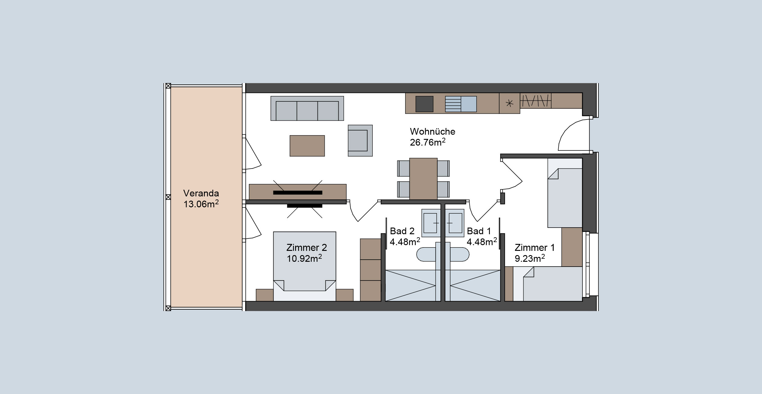 55,87 m² + 13,06 m² Veranda